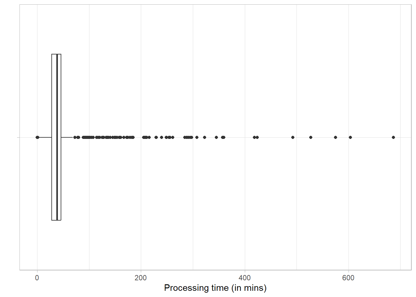 activity_log processing_time("case", units = "mins") %>%