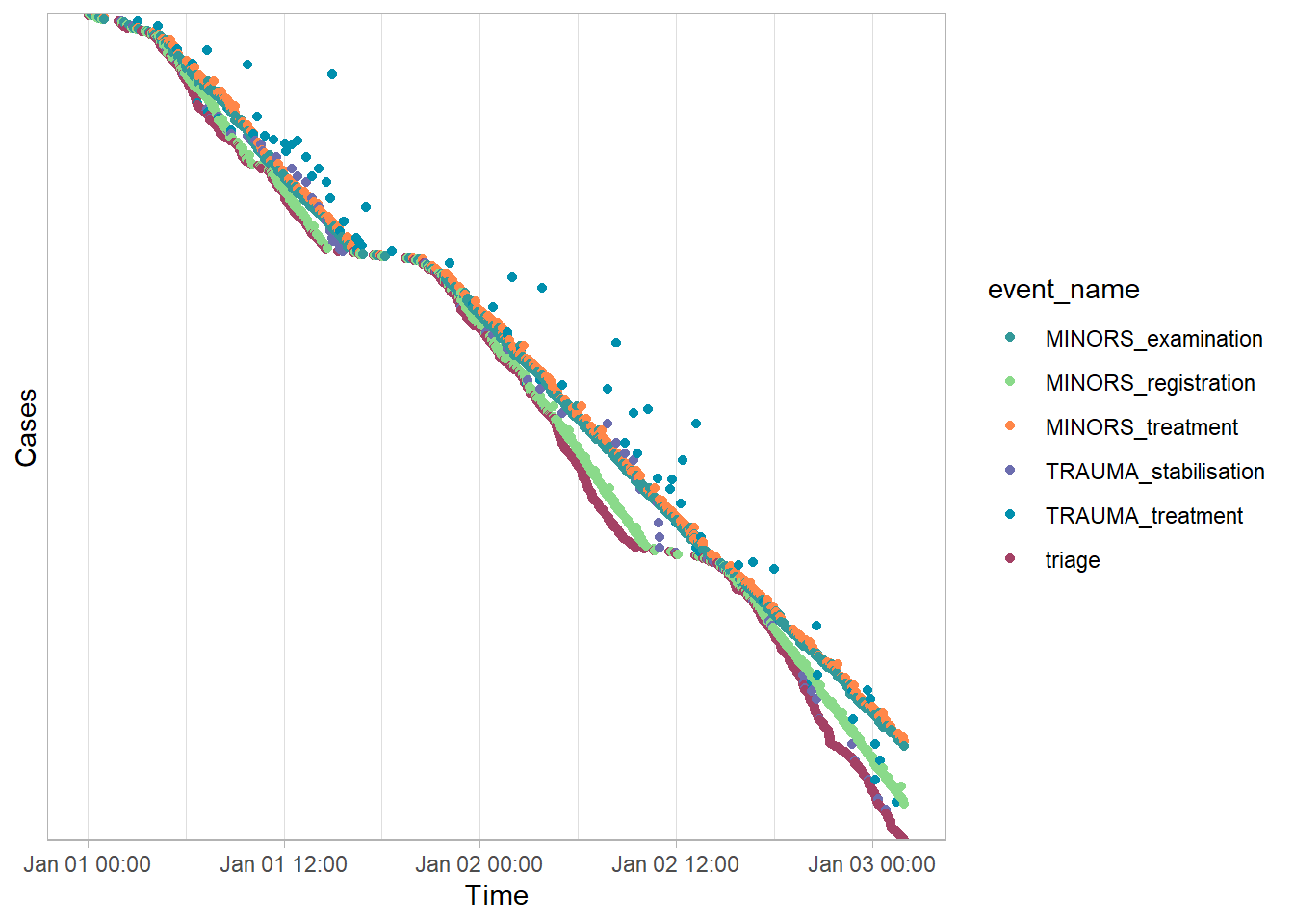 activity_log filter(event_name %in% c('TRAUMA_stabilisation', 'TRAUMA_treatment', 'triage')) %>%